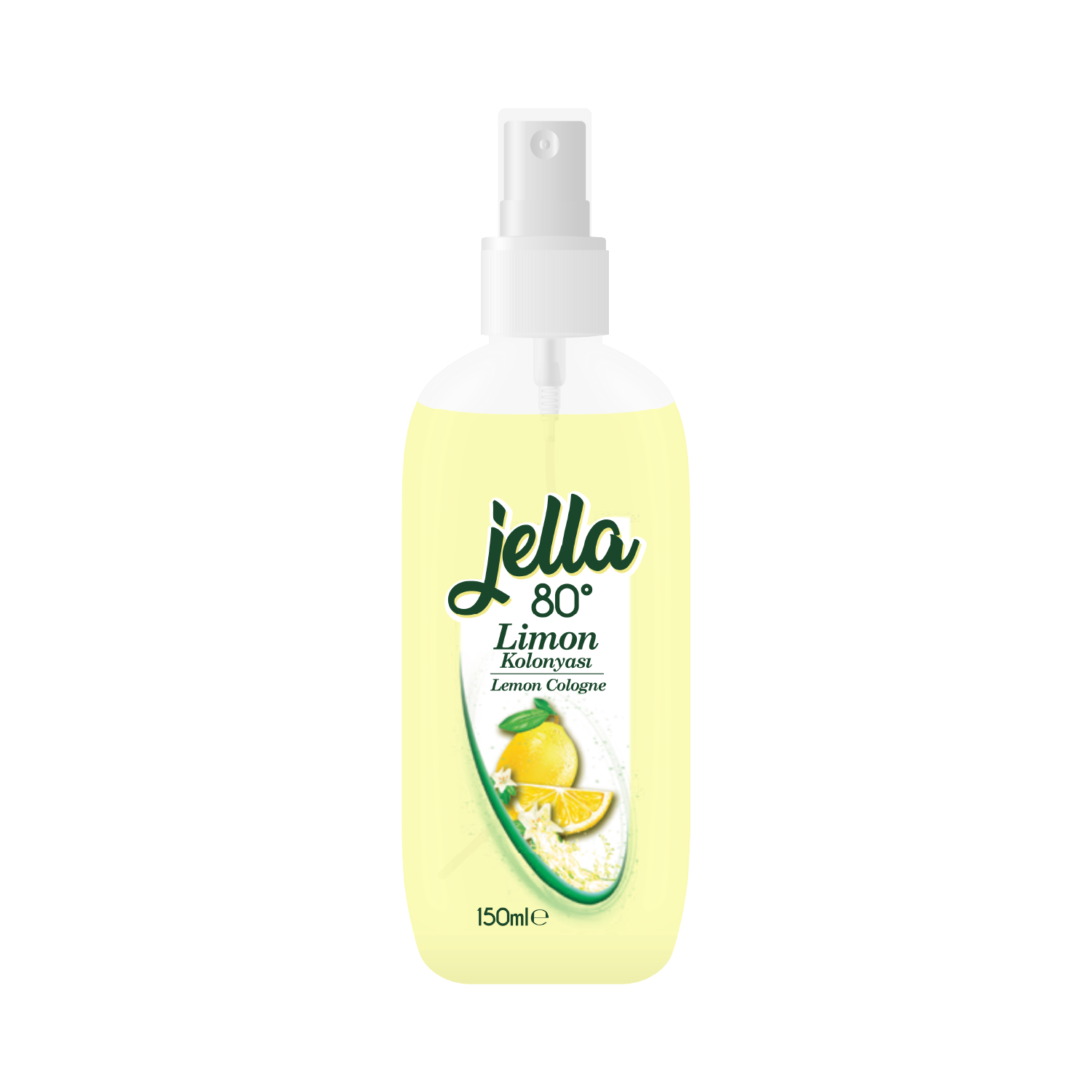 Jella Limon Kolonya 80° 150 ml, ferah limon kokusu ve hijyenik etkisiyle günlük kullanım için ideal. Taşıması kolay pratik boy.