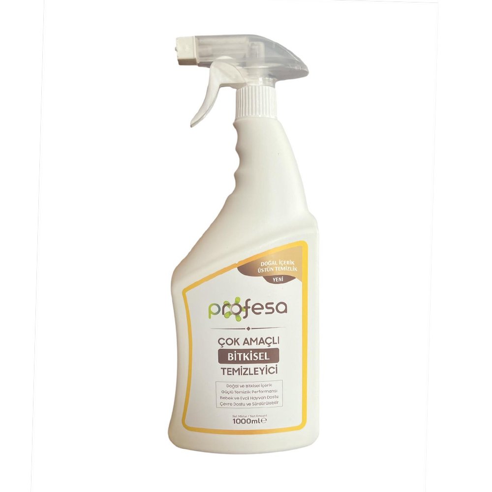 Profesa Çok Amaçlı Bitkisel Temizleyici; mutfaktan banyoya her alanda etkili, doğa dostu temizlik sağlar. Kimyasal içermez, durulama gerektirmez, %100 yerli üretimdir.