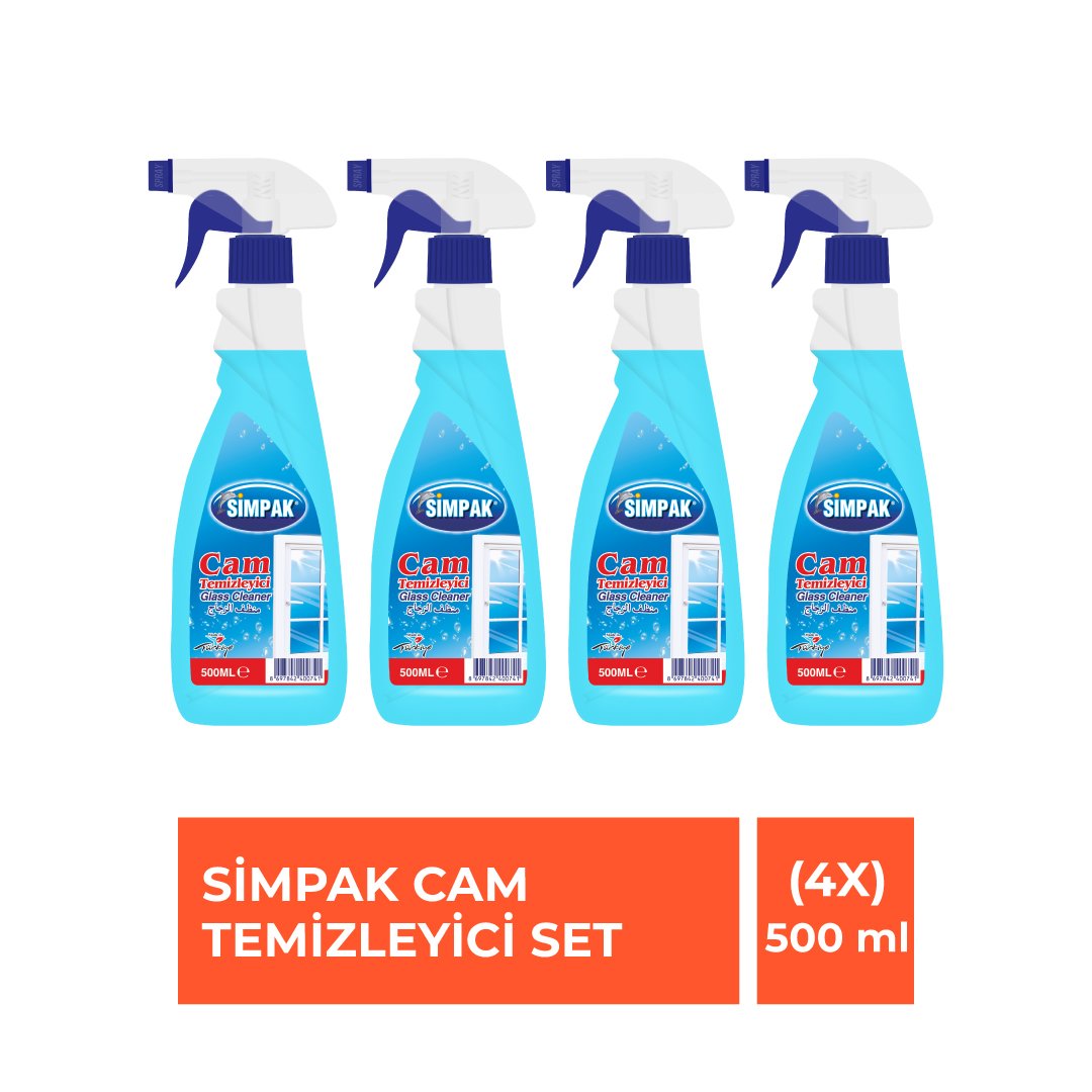 Simpak Cam Temizleyici 500 ml – 4’lü Ekonomik Set | İz Bırakmayan Parlaklık, Hızlı Kuruyan Formül, %100 Yerli Üretim